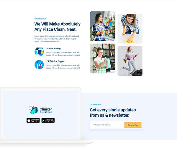 Choose a homepage to start navigating Cleanixer. Build strong & impressive websites using Cleanixer premade templates.