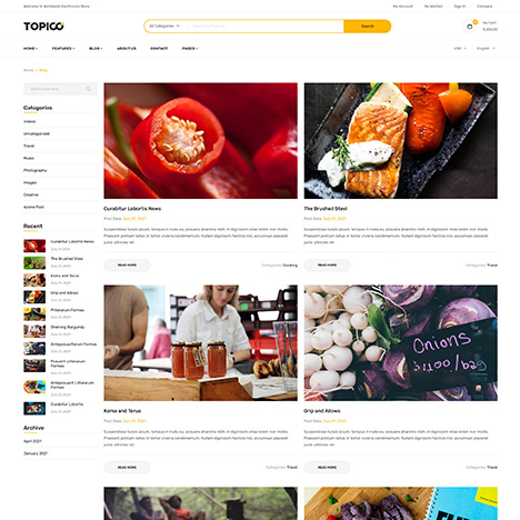 We have included beautiful and useful blog archive layouts - list, grid, masonry views. And blow single is also a gem. Moreover, you can show or hide the sidebars.